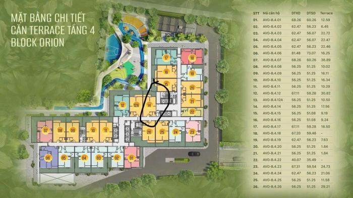 * Căn sân vườn B4.14 -2pn+1wc / 74m2 : Hướng nam- view nội khu công viên duy nhất + ban công tiểu cảnh 18m2