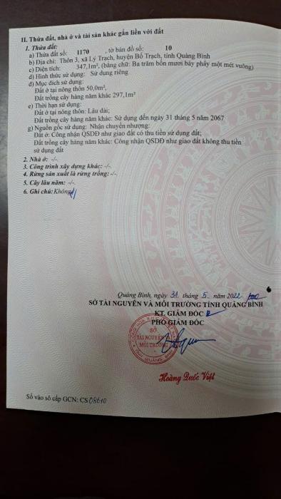 Diện tích: 347 m2 Giá: 1,000 Vnđ Quận/Huyện: Huyện Bố Trạch Tỉnh/Thành phố: Quảng Bình