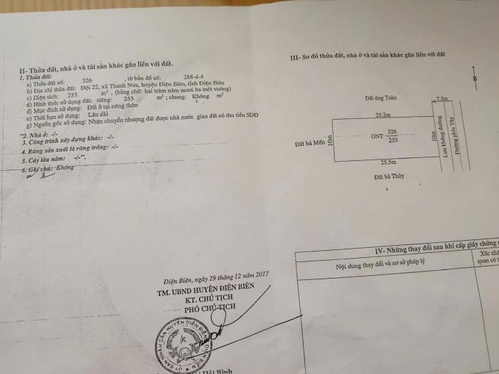 CHÍNH CHỦ CẦN NHƯỢNG LẠI MẢNH ĐẤT TẠI XÃ THANH YÊN - HUYỆN ĐIỆN BIÊN - TỈNH ĐIỆN BIÊN * Vị trí: Đầu cầu C9, cách trung tâm thành phố Điện Biên chỉ 4km. *...