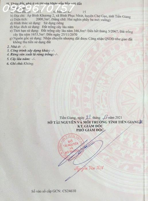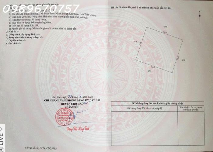 - Cần tiền bán nhanh lô đất Ấp Bình Khương 2, Xã Bình Phục Nhứt, Chợ Gạo, Tỉnh Tiền Giang. - Diện tích: 2.003 m², có 250 m² đất ở. - Đất vuông vứt...