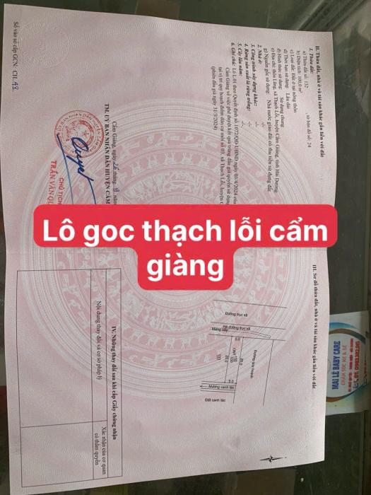 Chính chủ cần bán lô đất 100m2 thôn Lũng xã Thạch lỗi huyện Cẩm Giàng Hải Dương