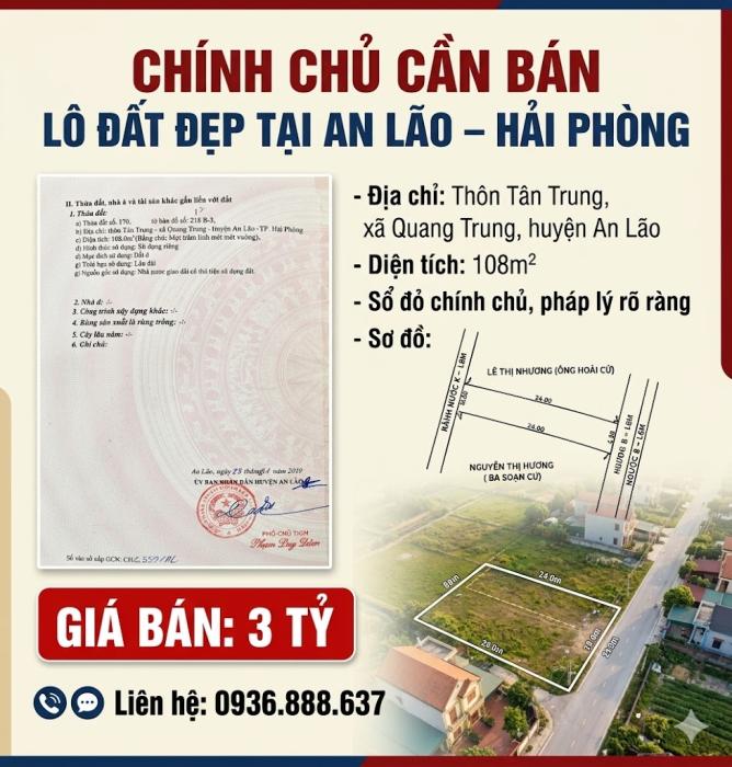 Diện tích: 108 m2 Giá: 3,000,000,000 Vnđ Quận/Huyện: Huyện An Lão Tỉnh/Thành phố: Hải Phòng