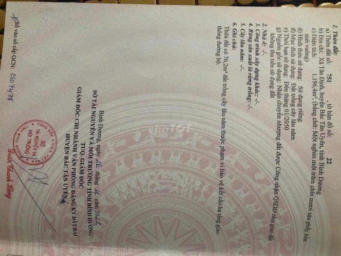 - Cần tiền bán nhanh lô đất siêu đẹp đường tân Định 37, Bắc Tân Uyên, Bình Dương. - Diện tích: 3377m2. - Đường nhựa Container, giao thông thuận lợi tuyến...