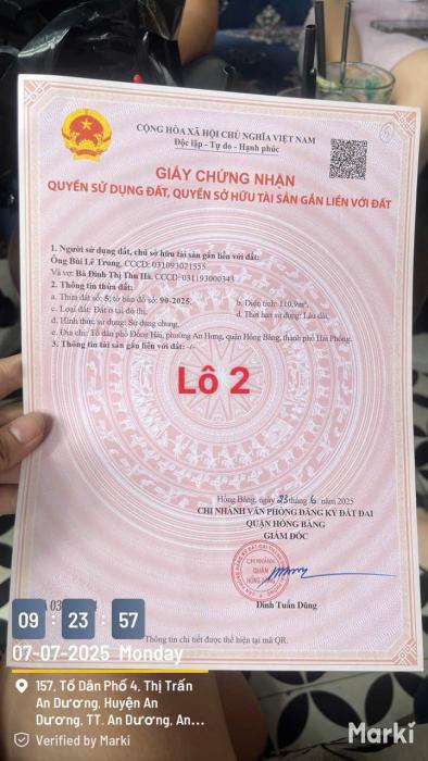 + Lô 2:110,9m2 (Lô số 5, Thuộc An Hưng – Hồng Bàng, đất KCN Him Lam)