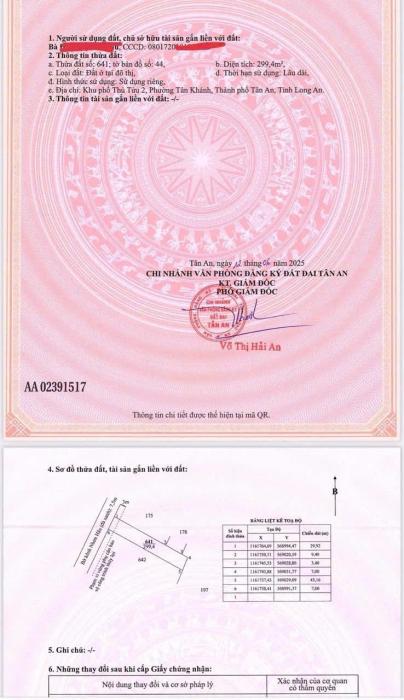Diện tích: 308 m2 Giá: 4,800,000,000 Vnđ Quận/Huyện: Thành phố Tân An Tỉnh/Thành phố: Long An