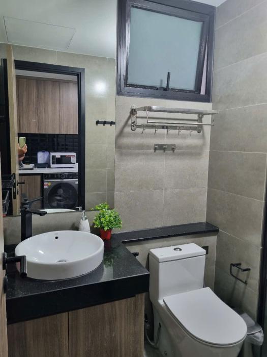 bếp , wc . Nội thất có sẵn : tivi 55 , máy lạnh , máy giặt sấy khô , tủ lạnh , máy nước nóng , bếp từ , nồi cơm điện , lò vi sóng , ấm