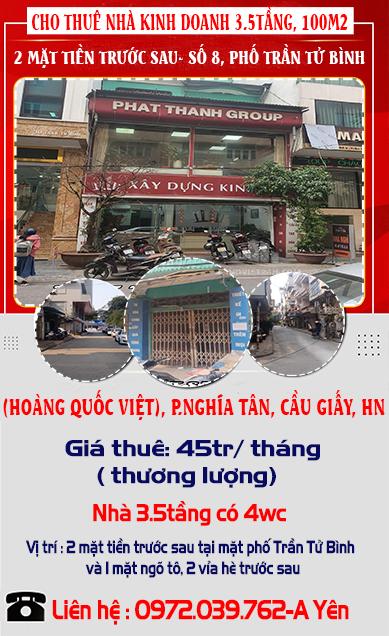 DT: 100m2, Giá thuê: 45tr/ tháng( thương lượng)