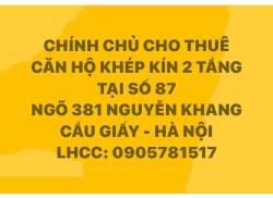 CHO THUÊ CĂN HỘ KHÉP KÍN 2 TẦNG TẠI SỐ 87 NGÕ 381 NGUYỄN KHANG, CẦU GIẤY, HÀ NỘI