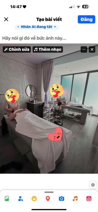✨ Không gian spa:• 2 tầng rộng rãi, bố trí hợp lý• Phòng VIP riêng biệt• 2 phòng xông hơi cao cấp• Trang trí đẹp, sạch sẽ, sang trọngNgang 6m dài 20m2 tầng