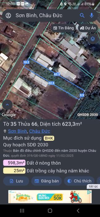 Khu vực: Huyện Châu Đức, Bà Rịa Vũng Tàu Ngày: 09:32 | 23/01/2026 Giá: 520,000,000 Vnđ