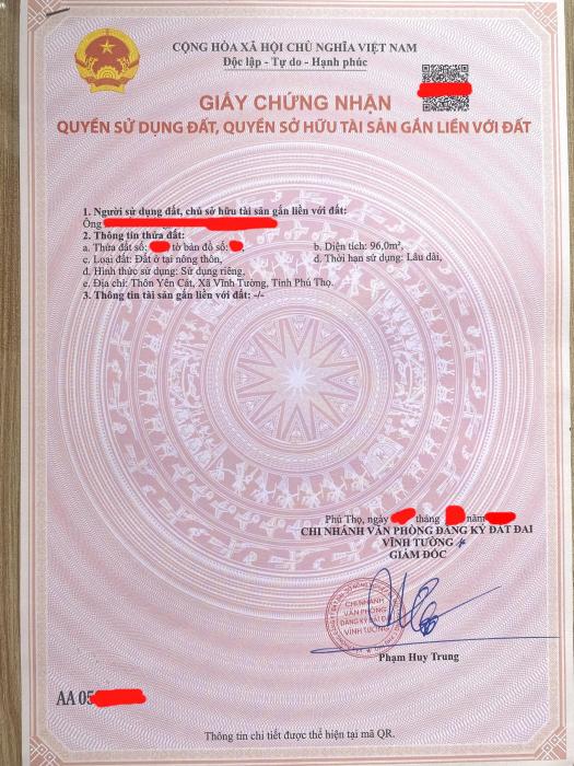 HOT !!! SỞ HỮU NGAY LÔ ĐẤT ĐẸP - GIÁ TỐT - Vị Trí Đắc Địa Tại TT Vĩnh Tường, Huyện Vĩnh Tường, Vĩnh