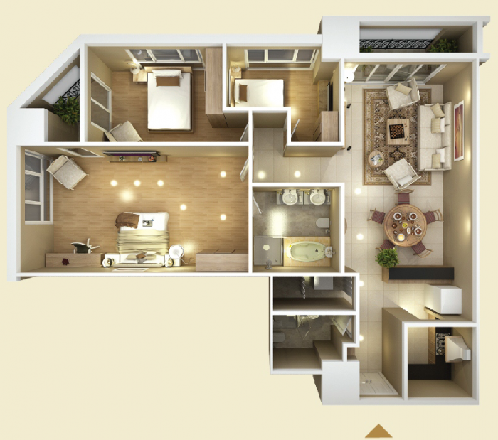 - Diện tích rộng: 84m2 tới 335m2