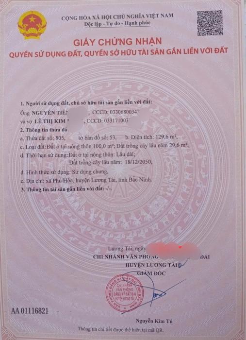 Khu vực: Huyện Lương Tài, Bắc Ninh Ngày: 15:12 | 12/08/2025 Giá: 1,300,000,000 Vnđ