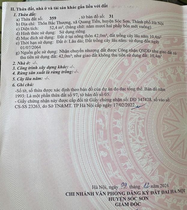 2 tỷ mà mua được 102m full thổ cư yaoj xã Sóc Sơn, không mua là mất