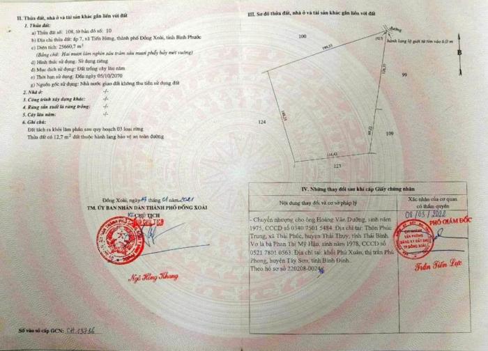 Diện tích: 25660 m2 Giá: 8,960,000,000 Vnđ Quận/Huyện: Thành phố Đồng Xoài Tỉnh/Thành phố: Bình Phước
