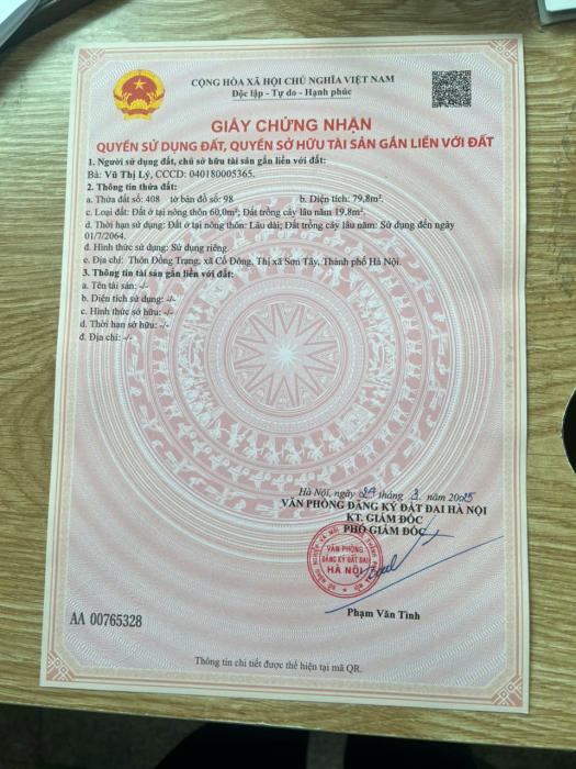 Khu vực: Thị xã Sơn Tây, Hà Nội Ngày: 13:59 | 07/01/2026 Giá: 2,900,000,000 Vnđ