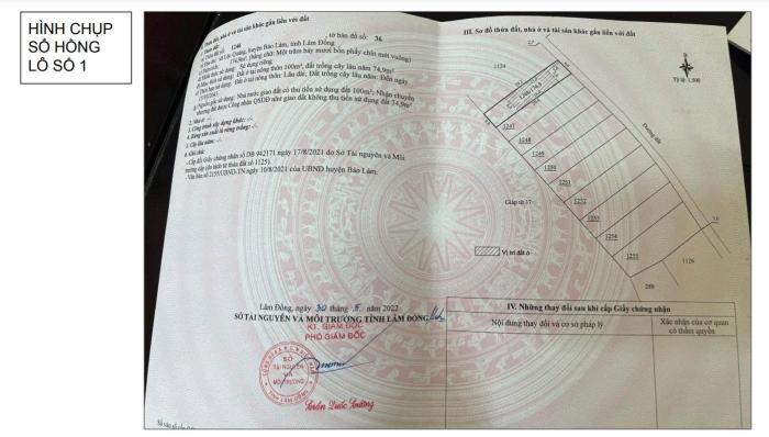 ĐẤT ĐẸP – GIÁ TỐT - CHÍNH CHỦ CẦN BÁN GẤP LÔ ĐẤT TẠI Huyện BẢO LÂM, tỉnh LÂM ĐỒNG- Địa chỉ: Hẻm 1131 Đường Nguyễn Văn Cừ, Xã Lộc Thắng, Bảo Lâm,...