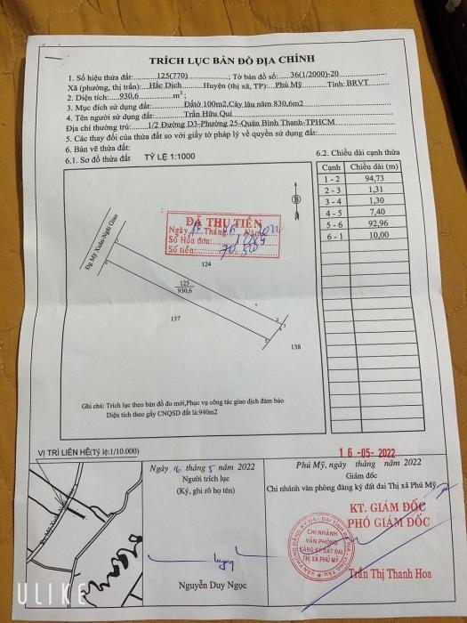BÁN GẦN 3.000M2 ĐẤT – KV CHÂU PHA PHÚ MỸ, GẦN KỀ KCN CHÂU ĐỨC - Giá 2.7 tỷ (còn thương lượng)- Diện tích 2.993,6m². Ngang 93m cực đẹp, thích hợp đầu tư...