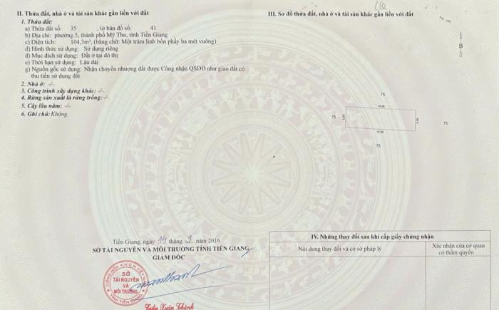 Diện tích: 104 m2 Giá: 6,600,000,000 Vnđ Quận/Huyện: Thành phố Mỹ Tho Tỉnh/Thành phố: Tiền Giang