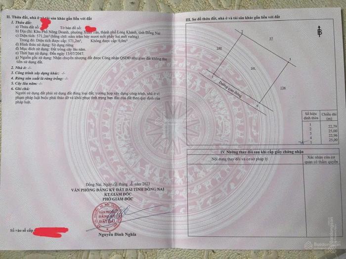 Diện tích: 571 m2 Giá: 1,950,000,000 Vnđ Quận/Huyện: Thành phố Long Khánh Tỉnh/Thành phố: Đồng Nai