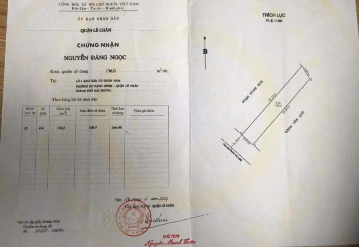 Diện tích: 136 m2 Giá: 7,480,000,000 Vnđ Quận/Huyện: Quận Lê Chân Tỉnh/Thành phố: Hải Phòng