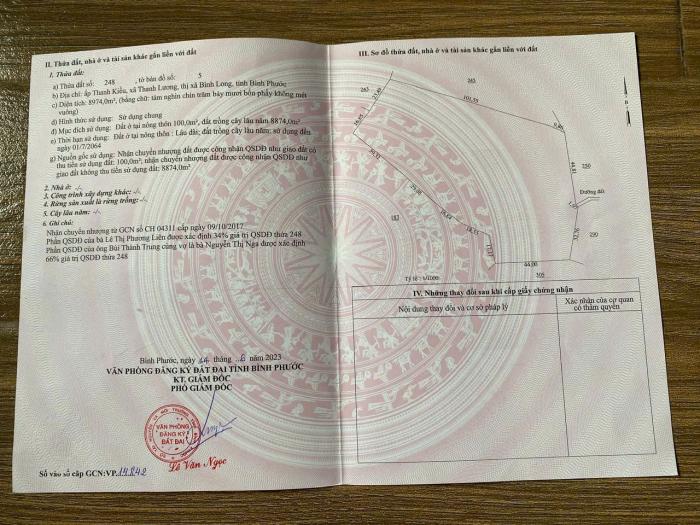 Diện tích: 9000 m2 Giá: 2,400,000,000 Vnđ Quận/Huyện: Thị xã Bình Long Tỉnh/Thành phố: Bình Phước