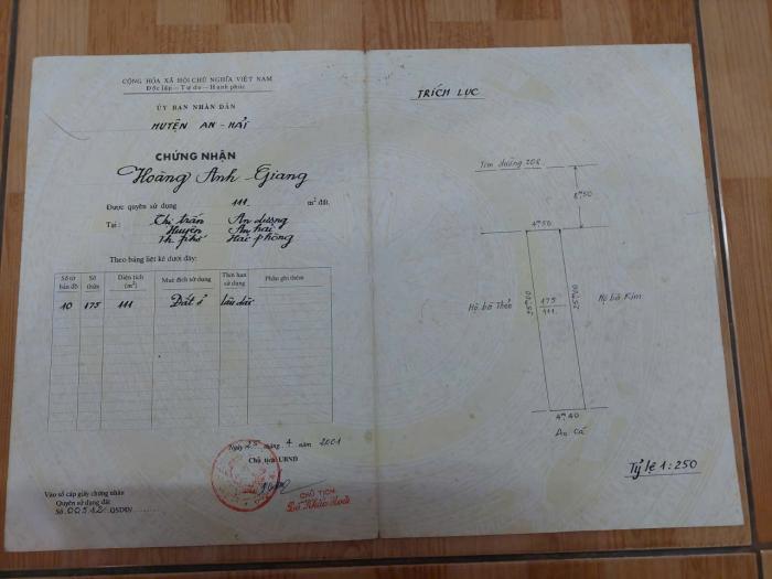 Diện tích: 111 m2 Giá: 5,500,000,000 Vnđ Quận/Huyện: Huyện An Dương Tỉnh/Thành phố: Hải Phòng