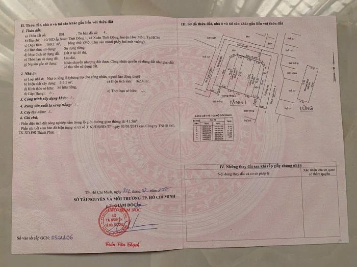 Diện tích: 160 m2 Giá: 7,250,000,000 Vnđ Quận/Huyện: Huyện Hóc Môn Tỉnh/Thành phố: Hồ Chí Minh