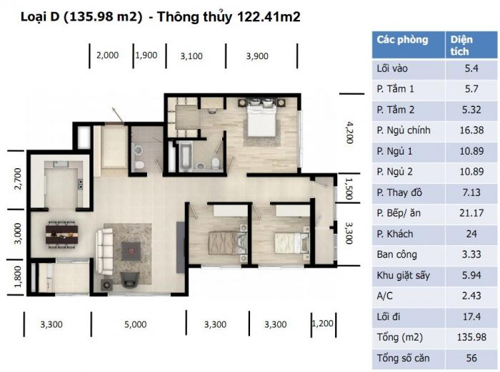 Loại C gồm 12 căn: Diện tích đất 120m2, diện tích xây dựng là 262m2