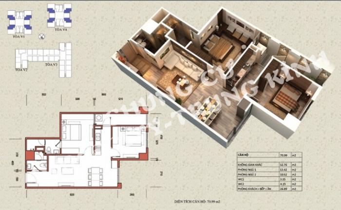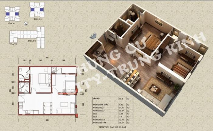 - Diện tích căn hộ: nhiều loại dt: 61m2, 70m2, 89m2…114m2(2PN-3PN)
