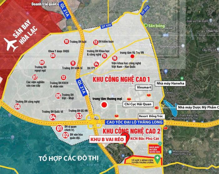 - Vùng lõi trung tâm Khu Công Nghệ Cao Hòa Lạc – vị trí đẹp bậc nhất, hiếm lô còn sót lại.