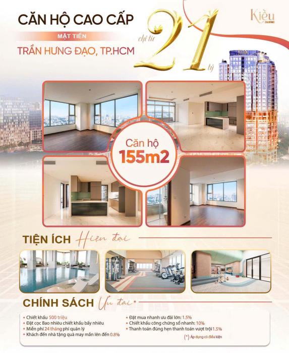 - Vị trí: 927 Trần Hưng Đạo, Quận 5 – liền kề Quận 1, giao thoa giữa Quận 3 và Quận 10- Diện tích căn hộ: 85 – 346m² (2PN – 3PN – Duplex – Penthouse)- Thi công: Hòa Bình – Nhà thầu hạng A uy tín- Pháp lý: Sổ hồng từng căn - Phát triển: KITA Group – thương hiệu kiến tạo biểu tượng sống tinh hoa