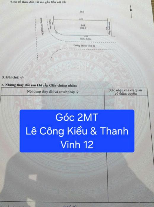 ĐẤT LÔ GÓC 2 MẶT TIỀN LÊ CÔNG KIỀU – THANH VINH 12 - XÂY CĂN HỘ Y BÀI