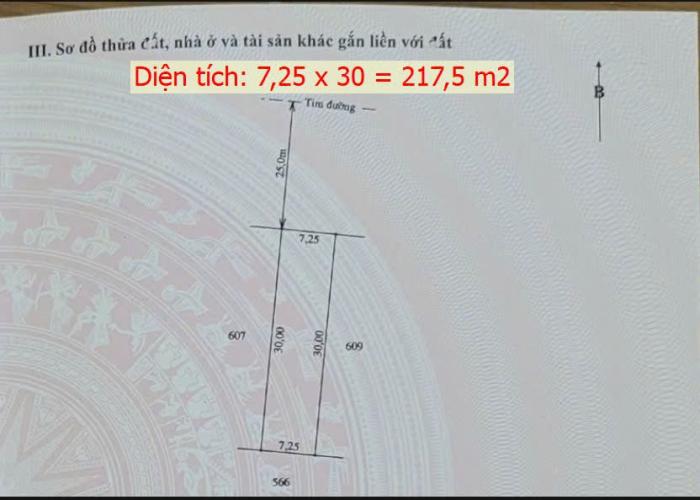 + Diện tích lý tưởng: 7,25m x 30m = 217,5m²/lô.