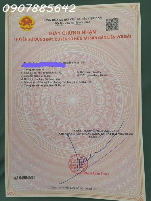 BÁN NHÀ 3 TẦNG SIÊU ĐẸP – MẶT TIỀN ĐƯỜNG LÝ THÁI TỔ, BẮC NHA TRANG Diện tích: 92m²,8,9 tỷ Số chứng