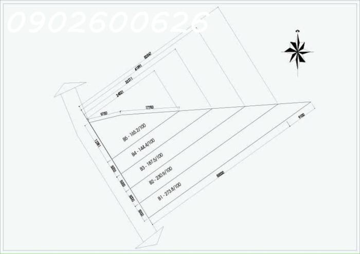 Thế đất tam giác nên mặt tiền lớn, dễ chia 5 lô nhỏ ( có sẵn thổ cư)