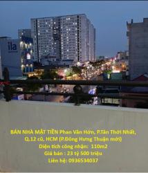 BÁN NHÀ MẶT TIỀN Phan Văn Hớn, P.Tân Thới Nhất, Q.12 cũ, HCM (P.Đông Hưng Thuận mới) - Diện tích công nhận: 110m2 sổ vuông A4 - 4,7x24m- Nhà 1 trệt, 3 lầu,...