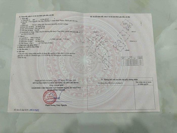 Địa chỉ: 170/5, Hẻm 170 Nguyễn Văn Đậu, Phường 7, Quận Bình Thạnh, Tp Hồ Chí MinhDiện tích : 38,3m2. Diện tích sử dụng 128,2m2, nhà nở hậuGiá bán: 7tỷ700tr ( có thương lượng)Kết cấu nhà: nhà 4 tầng, 3 phòng ngủ, 4 wc- Có thể đậu xe hơi, mặt tiền thụt - từ đường Nguyễn Văn Đậu vô 40m (CĂN GÓC)- Tiện ích xung quanh đầy đủ: Rất dễ để tiếp cận các tiện ích bậc nhất như: Chợ Bà Chiểu, Bệnh viện Hoàn Mỹ, Bệnh viện Gia Định, Trường học các cấp, Ngân hàng...- Khu dân cư đông, thân thiện, an ninh đảm bảo - Phù hợp: đầu tư sinh lời, định cư lâu dài - Giao thông thuận tiện, đi lại dễ dàng - Pháp lý: đầy đủ, thủ tục sang tên nhanh chóng Liên hệ chính chủ: 0908261326 – Thanh Tùng. Miễn tiếp môi giới và trung gian