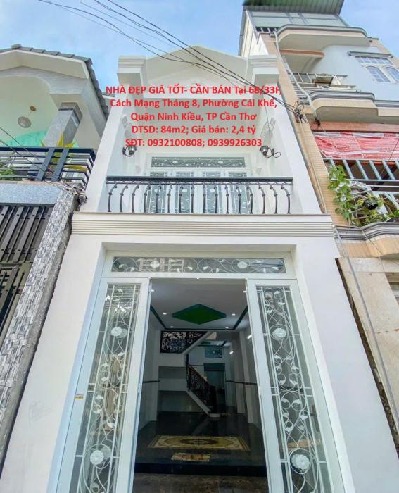 Địa chỉ: 68/33F, Cách Mạng Tháng 8, Phường Cái Khế, Quận Ninh Kiều, TP Cần ThơDiện tích sử dụng 84m2 (1 trệt, 1 lầu đúc kiên cố). Giá bán: 2,4 tỷ ( có thương lượng cho khách chốt nhanh). Vay được 1,6 tỷKết cấu nhà: - Mặt tiền hẻm 68 đường CMT8 (số nhà 68/33F) - Khu vực trung tâm, dân cư đông đúc, dân trí cao, an ninh tốt. Ô tô tới nhà- Phù hợp kinh doanh, đi học, đi làm,….- Nhà 1 trệt, 1 lầu đúc kiên cố. 1 phòng khách, 1 bếp, 2 phòng ngủ, 1 phòng thờ (có thể làm phòng ngủ), 2 WC. - Giếng trời, thông gió phía sau- Nội thất: Bộ tủ bếp, vòi nóng lạnh năng lượng mặt trời, 2 máy lạnh 1HP hiệu Casper mới tinh, siêu mát và tiết kiệm điện- Hướng Đông Nam Nhà đang cho thuê, giá 6 triệu/tháng, nguồn thu ổn định - Sổ hồng riêng – công chứng ngay - Đầu tư là hời, khả năng sinh lời caoLIÊN HỆ : Khải (0932100808) hoặc Trung (0939926303)