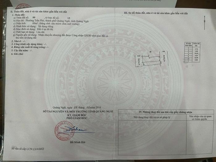 Diện tích: 69 m2 Giá: 2,570,000,000 Vnđ Quận/Huyện: Thành phố Quảng Ngãi Tỉnh/Thành phố: Quảng Ngãi