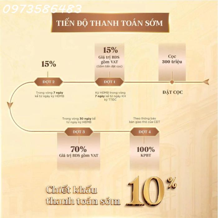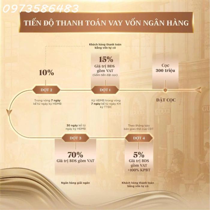 ???? 3 PHƯƠNG THỨC THANH TOÁN - TỐI ƯU DÒNG VỐN- Thanh toán chuẩn: 5 đợt, chiết khấu 2% khi đặt mua trên NobleX App- Thanh toán sớm: 4 đợt, chiết khấu 10%/năm.- Thanh toán bằng vốn vay: 4 đợt, hỗ trợ ngân hàng tới 70% giá trị sản phẩm, lãi suất 0% trong 18 tháng.
