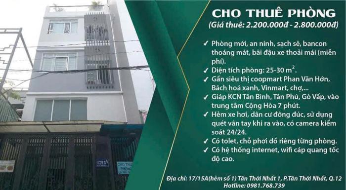 Cho Thuê Phòng Mới Giá Rẻ Trung Tâm Gần Ubnd P.Thạnh Xuân, Quận 12 (P. Thới An Mới), Hcm Diện tích: 20m2 ̣ + Phòng ở lầu 2, có ban công + toilet riêng ngoài phòng, thoáng,...