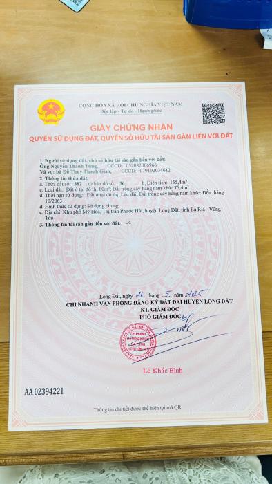 Khu vực: Huyện Đất Đỏ, Bà Rịa Vũng Tàu Ngày: 15:20 | 02/12/2025 Giá: 980,000,000 Vnđ