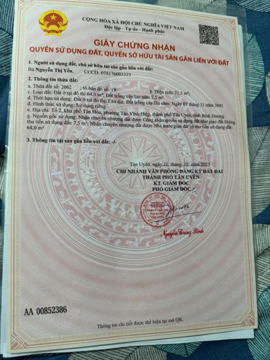 BÁN NHÀ CHÍNH CHỦ NGAY MẶT TIỀN ĐƯỜNG NGUYỄN KHUYẾN – TÂN UYÊN, BÌNH DƯƠNG - Địa chỉ: Khu phố 1, phường Tân Hiệp, thành phố Tân Uyên, tỉnh Bình Dương.- Sổ...