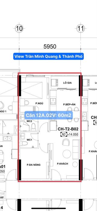 - Căn 60m2 - Giá: 1 tỷ 795 ( view Trần Minh Quang&TPTầng trung