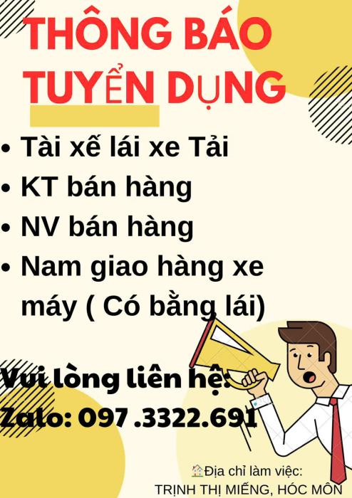 THÔNG BÁO TUYỂN DỤNG - TÀI XẾ